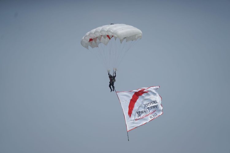Bahkan, ribuan pengunjung dibuat takjub dengan penampilan aksi terjun payung dari Federasi Aero Sport Indonesia Daerah Bogor (Fasida Bogor) yang terjun dari helikopter di ketinggian 5 ribu kaki.