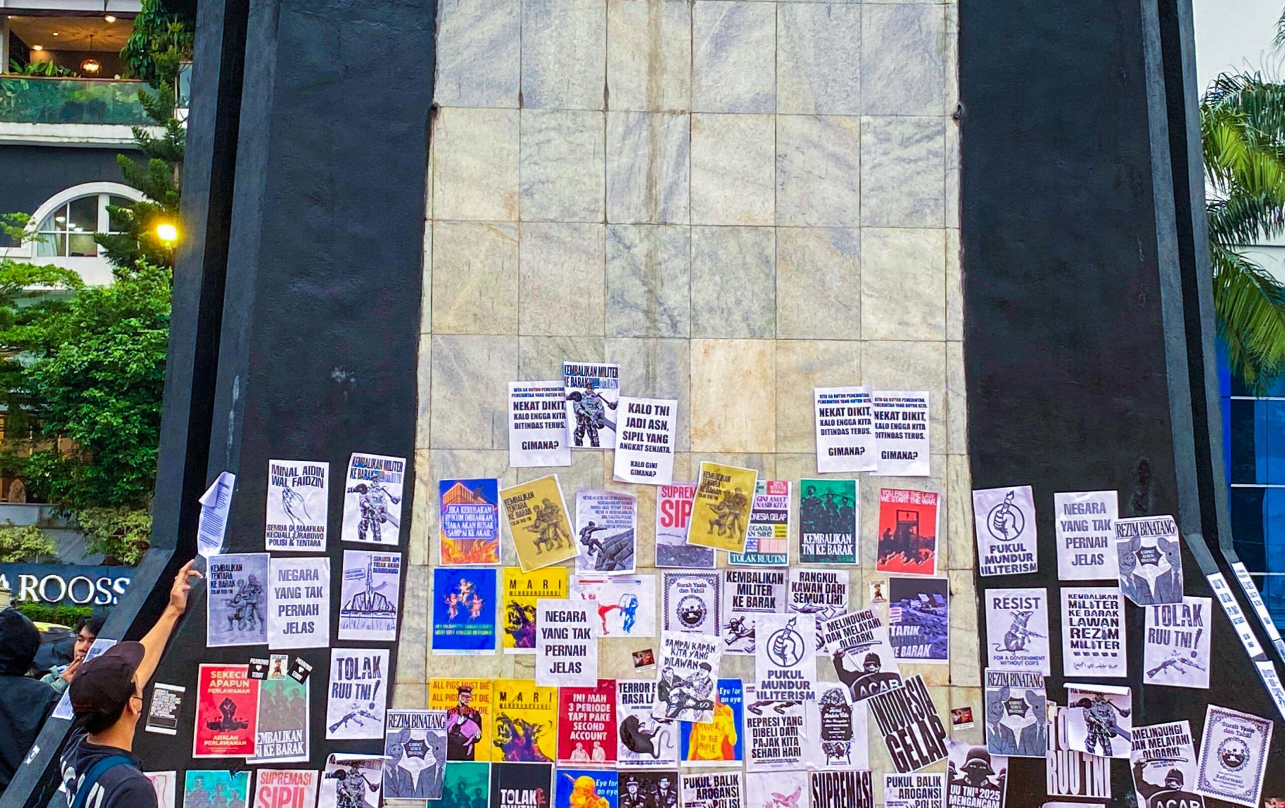 Dalam aksi tersebut massa aksi membakar road barrier, ban bekas, serta mencoret pelataran Tugu Kujang. Selain itu, sejumlah poster penolakan terhadap UU TNI ditempelkan di tiang dan area sekitar tugu yang merupakan ikon Kota Bogor.
